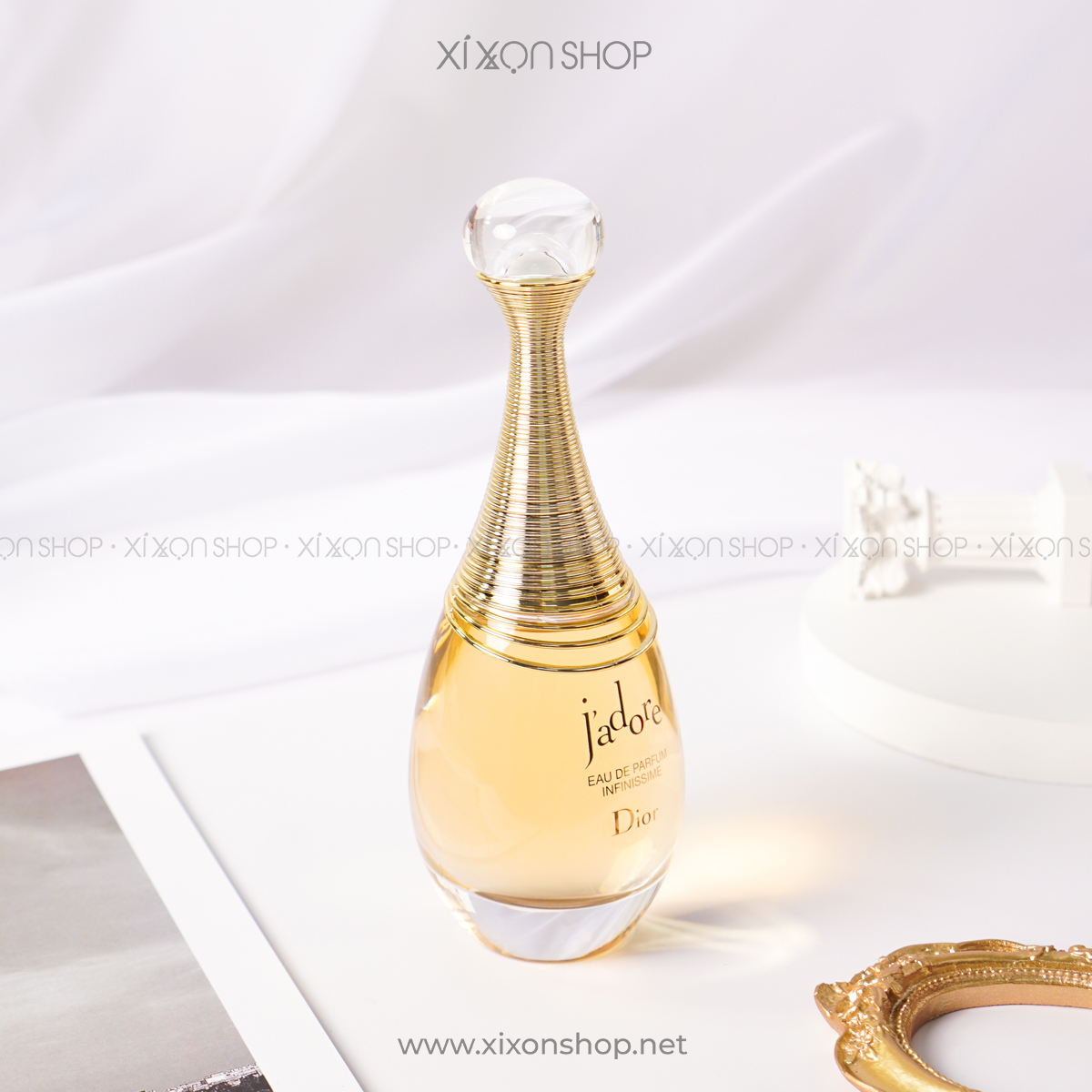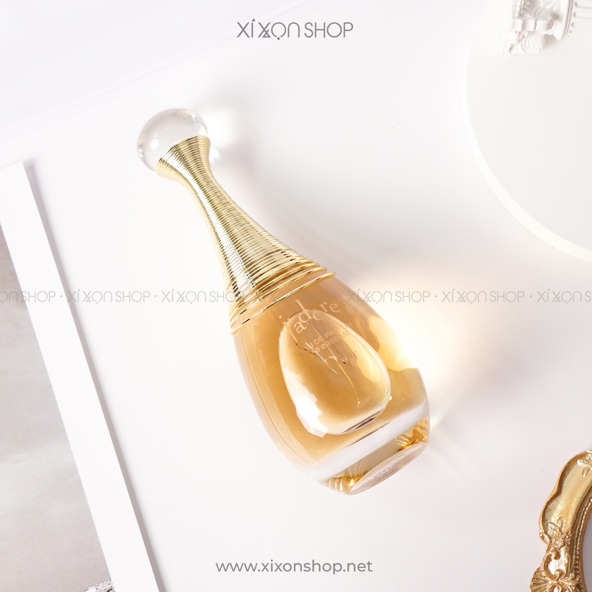 Chai nước hoa cho nữ Dior J’adore Infinissime EDP đến từ thương hiệu cao cấp Dior nổi tiếng được ra mắt năm 2020 là một trong những mùi hương chị em với phiên bản tiền nhiệm trước đó. Vẫn giữ vẻ gợi cảm, hút hồn từ ngoài đến bên trong, sự nhẹ nhàng, nữ tính được tăng cường. Chỉ khi nào được chạm, được trải nghiệm bạn mới hiểu thứ cảm xúc mà bạn nhận được tuyệt vời thế nào. Những đường cong chai cực hút mắt, tựa như những giọt nước với sắc vàng hoàng gia bao phủ toàn bộ bên ngoài. Chi tiết vòng xoắn kim loại uyển chuyển quanh cổ chai cùng viên pha lê ở đỉnh nắp, thể hiện niềm kiêu hãnh, khao khát khiến không ai có thể rời mắt ngó lơ.
