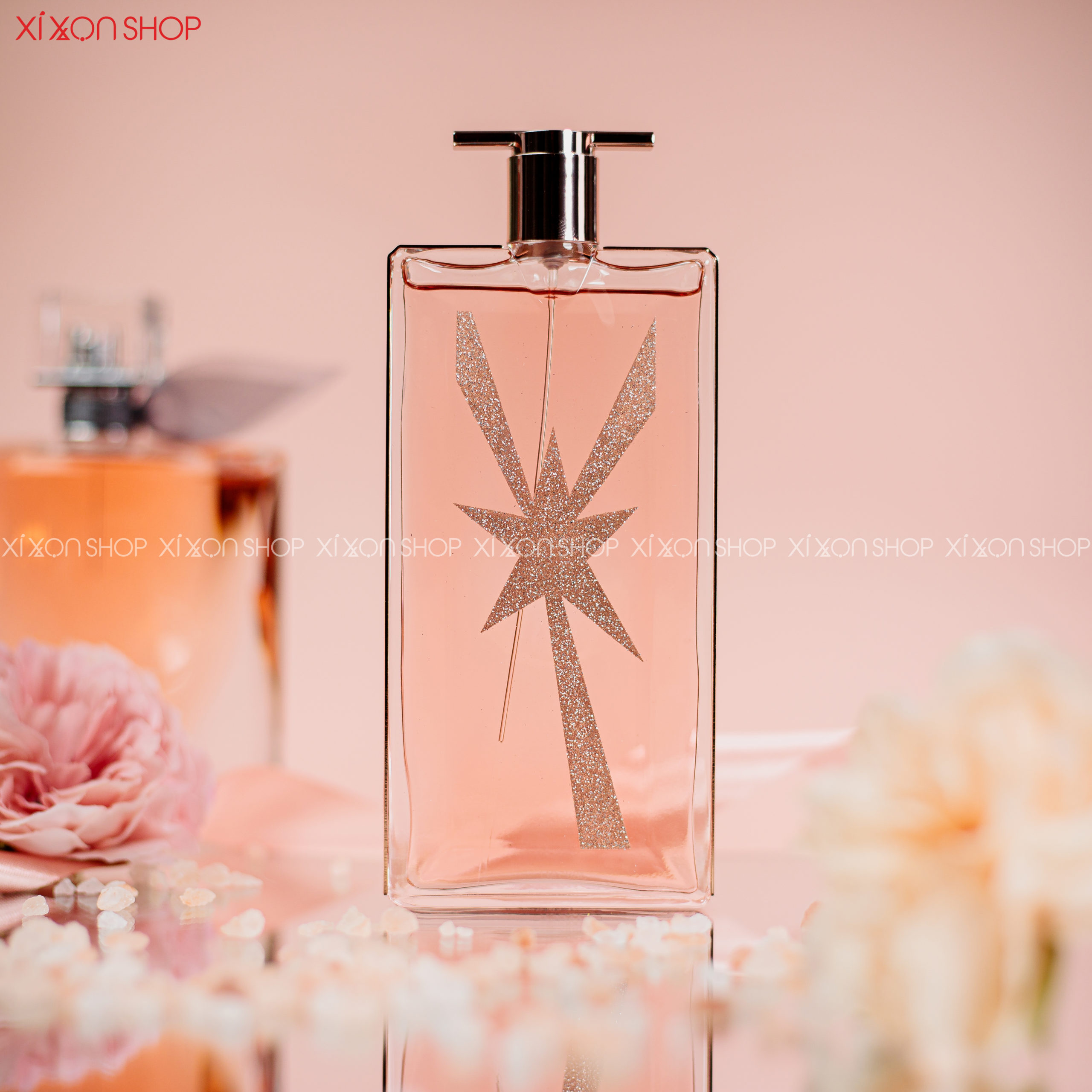Lancome Idôle Le Parfum Sparkling phiên bản giới hạn năm 2021, một lần nữa lại gây ấn tượng với giới mộ điệu! Tuyệt phẩm cất giữ không chỉ là hương thơm mà còn là nơi lưu giấu những khoảnh khắc đẹp – một món quà của thời gian. Người hâm mộ một lần nữa là được mãn nhãn khi Lancome trình làng thiết kế vào năm 2021 dưới sự kết hợp tuyệt vời của ba nhà pha chế nước hoa nổi tiếng Adriana Medina-Baez, Nadege le Garlantezec và Shyamala Maisondieu. Họa tiết ngôi sao băng màu bạc lấp lánh trên thân chai được xem là điểm nhấn cho thiết kế này. Thiết kế vẫn trung thành với sắc nước hoa màu hồng phấn dịu nhẹ kèm theo chiếc nơ xinh xắn ngay cổ chai. Tổng thể tạo nên một Lancome Idôle le Parfum Sparkling kiêu sa.
