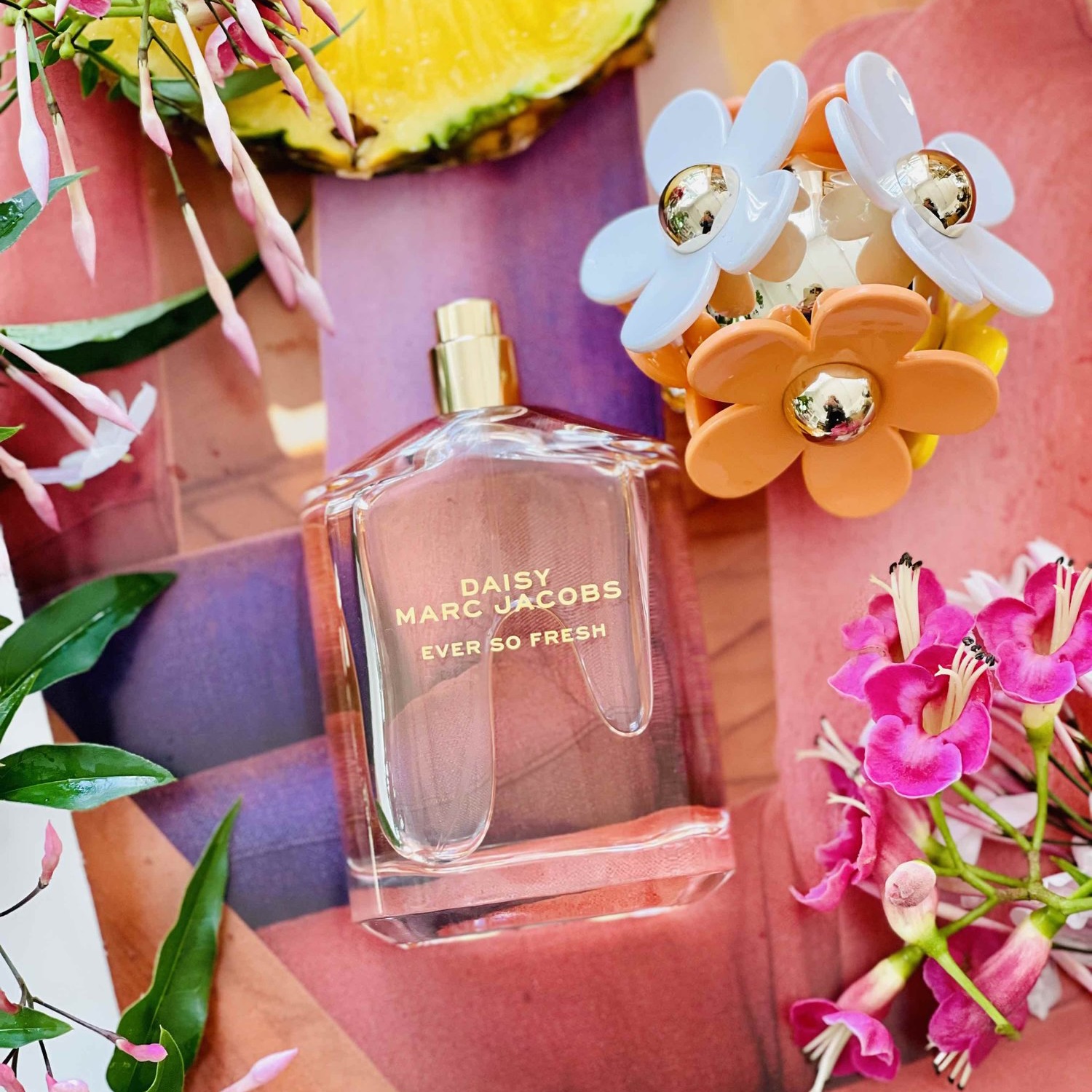 Sắc màu mà Marc Jacobs đã tô điểm cho đứa con tinh thần của mình mang đậm hơi thở nhựa sống. Chúng tươi mới và năng động khiến bao người yêu ngay từ cái nhìn đầu tiên. Nét trẻ trung mà nước hoa Marc Jacobs Daisy Ever So Fresh đem đến được thể hiện ngay từ những note hương đầu tiên bởi sự góp mặt của các loại quả nhiệt đới như xoài, thơm và quả quýt, để rồi cô gái xuân thì này mang chút e dè, ngọt ngào với sự xuất hiện của hoa cam và nước hoa hồng nhè nhẹ ở tầng hương giữa. Nước hoa Daisy Ever So Fresh Marc Jacobs đã khép lại bản giao hưởng du dương cùng chút trầm ấm, sâu lắng do gỗ Cashmere mang đến.