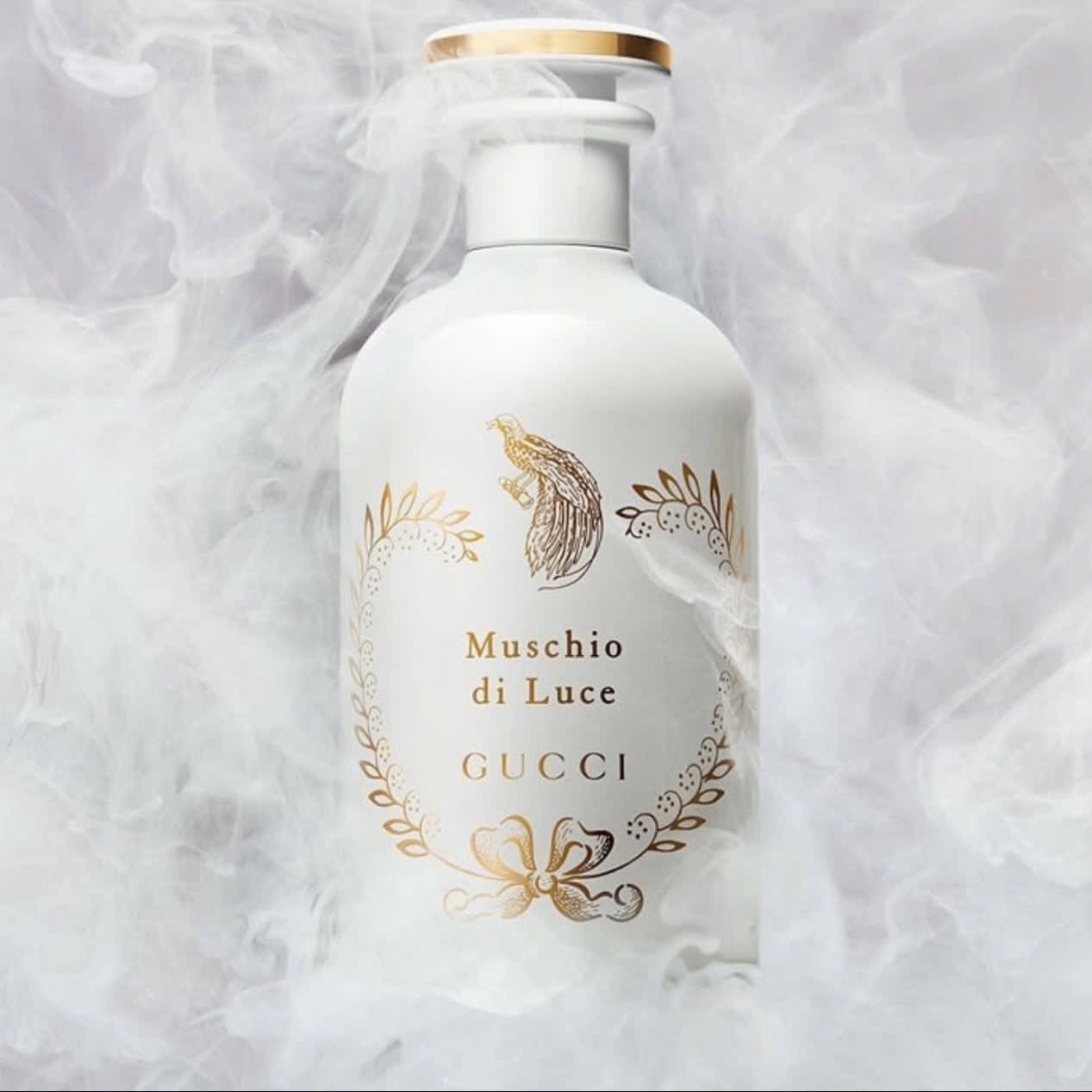 Gucci Muschio di Luce ra mắt năm 2025, nằm trong bộ sưu tập nghệ thuật The Alchemist’s Garden, nơi thương hiệu Gucci gửi gắm những sáng tạo hương độc đáo và giàu tính biểu tượng. Được chế tác bởi nhà pha chế nổi tiếng Alberto Morillas, Muschio di Luce mang ý nghĩa “xạ hương của ánh sáng”, gợi lên cảm giác tinh khôi, trong trẻo nhưng vẫn ấm áp và sâu lắng. Thiết kế chai giữ nguyên phong cách sang trọng của dòng Alchemist’s Garden với dáng chai thủy tinh thanh lịch, màu trắng sữa ngà trang nhã, điểm xuyết chi tiết vàng kim tinh xảo cùng hoa văn cổ điển, tạo nên vẻ đẹp vừa hiện đại vừa mang dấu ấn cổ điển, như một lọ thuốc quý trong phòng thí nghiệm giả tưởng.
